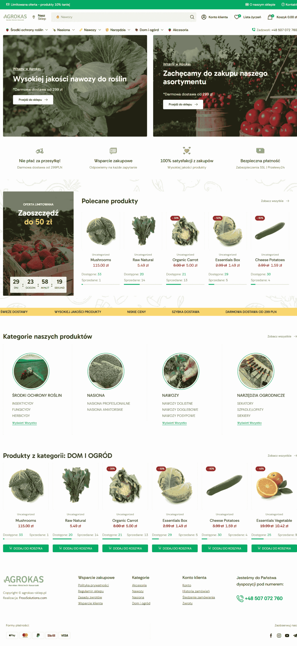 Szybki i niezawodny silnik sklepu oparty na Woocommerce, dobrze zabezpieczony przed wstrzymaniem sprzedaży, atakami hakerskimi. Pełnna płynność